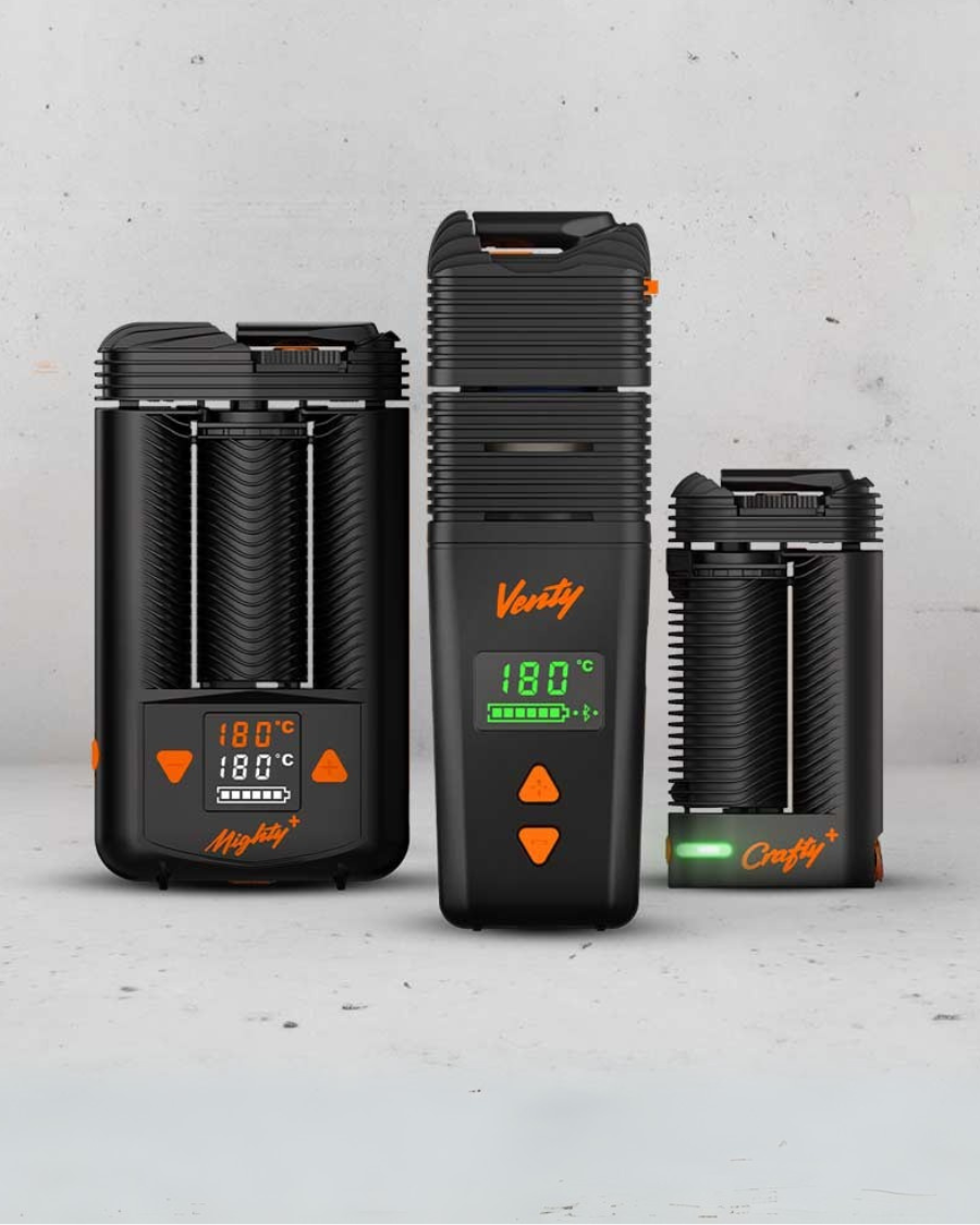 Since then, Storz & Bickel, based in Germany, has innovated their original desktop vaporizer with the introduction of the Volcano Hybrid, along with a pared-down tabletop vape that's Plenty for personal use. They've also brought us a unique assortment of portable vaporizers, with the retro-futuristic Storz & Bickel clean, industrial style and ultra-minimal color palette. The Mighty and Crafty vapes put Storz & Bickel's patented combination of convection and conduction heating into pocket-sized, battery-operated devices you can take on the go.